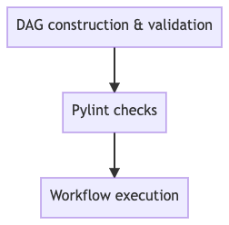 The lint module (metaflow/lint.py) contains a set of validity checks that are run against a DAG. From these checks